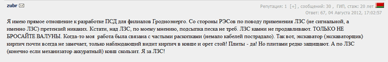 На сайте proekt.by есть интересный отзыв от энергетика из г.Гродно о том, как ЛЗС ведет себя ,когда на нее натыкается землеройная техника: